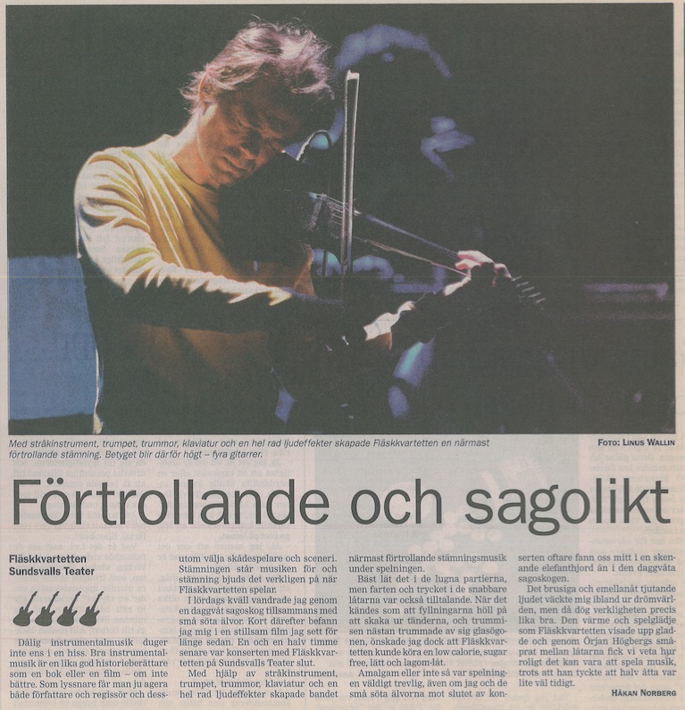 På Sundsvalls Teater. Med sitt 9:e album ! – Love Go – kommer Fläskkvartetten på ett kärt återbesök. Som gästartister finns Goran Kajfes , trumpet (Blacknuss, Eric Gadd) + en trombonist och saxofonist. Förköp på Entré, Köpmang. 20 tel. 060 – 15 5…