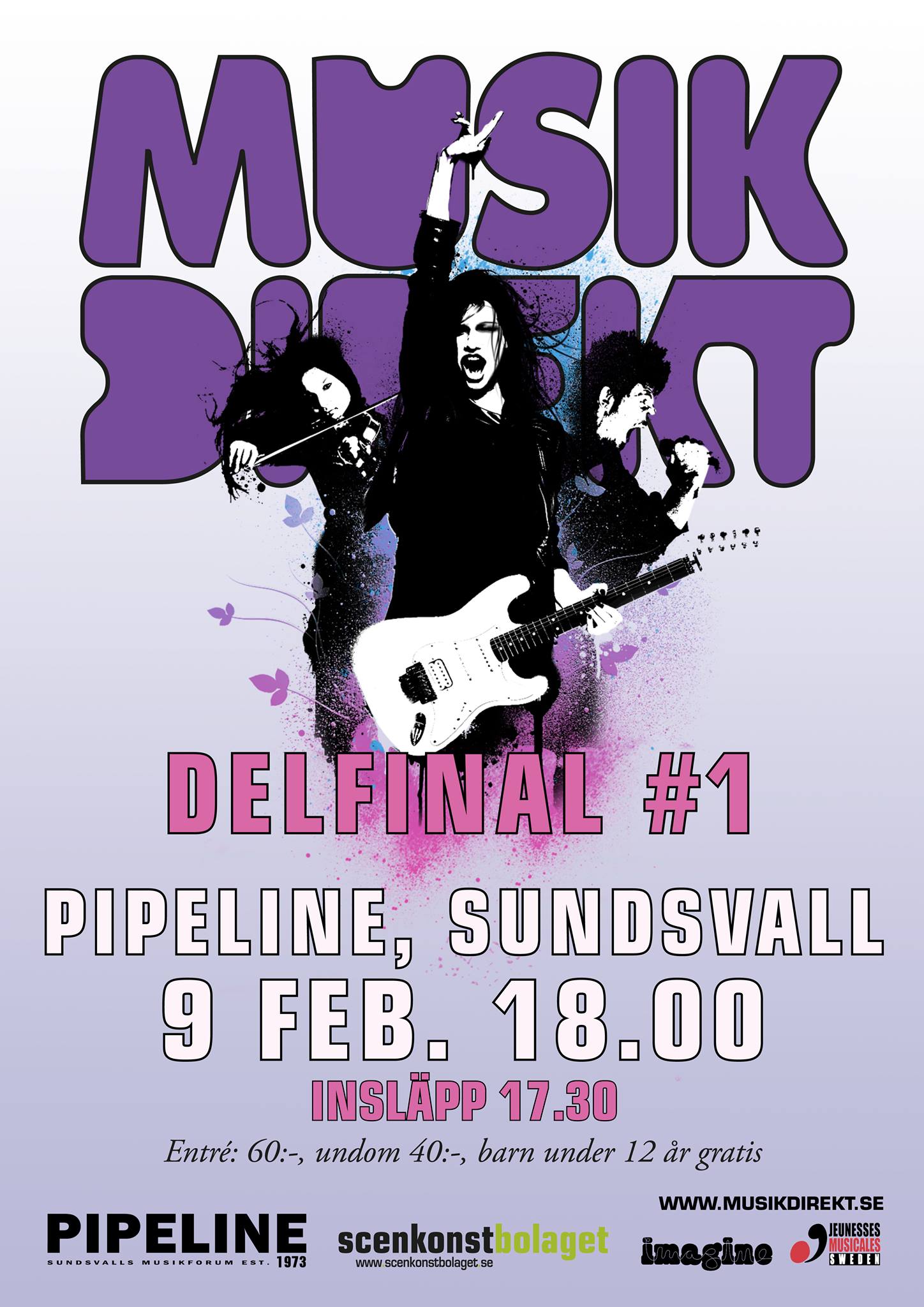 Uppställningen är följande när det gäller tävlande: Another Piece of Music, Four Wheels, Freedom Island, It’s not Lupus, Under cover girls (Sundsvall), Niklas Paulsson, Red means go, Noah Deutschmann Band, Rebecka & Julia, The Hillers (Härnösand), Puntastic Five (Söråker), SysterDyster (Ljungaverk) Konferencier för kvällen: Martin Häggström Entré är 60:-/40:- medl Pipeline/Skolungdom Under 12 år gratis