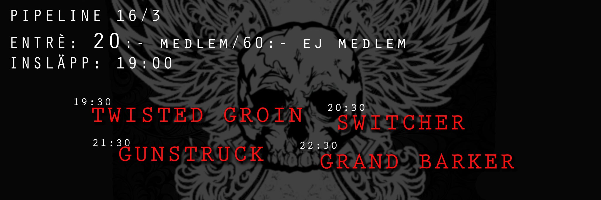 Pipeline bjuder in till en fullspäckad rockkväll som det kommer snackas om ett bra tag efter sista ackordet slagits ut. 22.30 GRAND BARKER – Grand Barker bildades för dryga ett år sedan av Stefan Carlsson, sång, Fredrik Carlsson, bas, Claes Edwardsson, gitarr och Stefan Suoimlainen på trummor. Man spelar riffbaserad rock med influenser från 70-talet […]