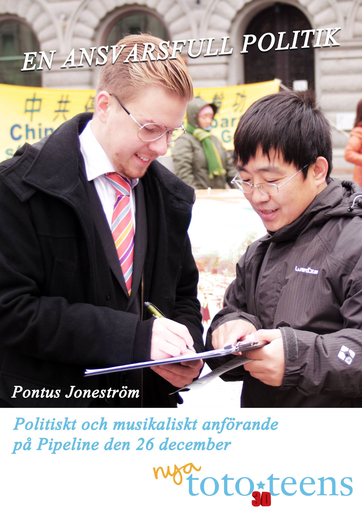 Vi startar nu det politiska partiet Nya Toto Teens 3D, med målet att bli invalda i riksdagen till valet 2014. Den 26 december kommer vi att hålla ett anförande om vårt partiprogram i form av en musikalisk show på Pipeline.